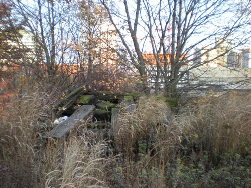 Pipe, wood, what civilization used to be here; what are these protrusions remnants of? Back then, in the before-time, goods were carried by what poets called the “iron horse.” Was this part of the drainage infrastructure? Amazing, the city had a working sewer system at one time.